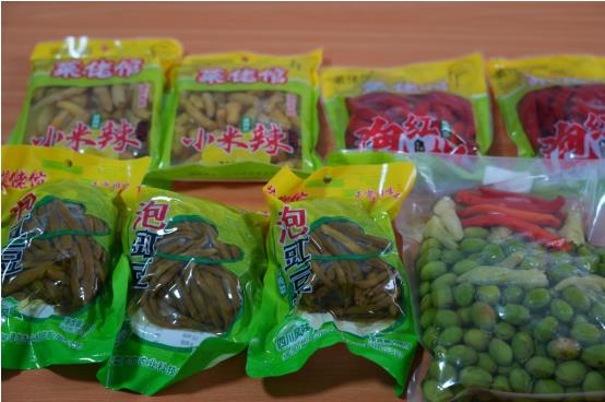 图为生产好的酱菜产品。
